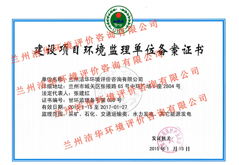 建設(shè)項(xiàng)目環(huán)境監(jiān)理單位備案證書